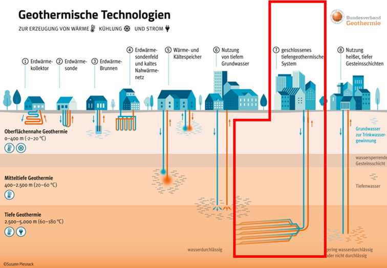 a) Fernwärme mit geschlossener Tiefengeothermie